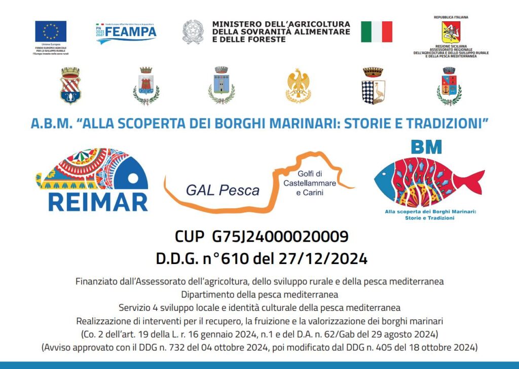 Il progetto “A.B.M. – Alla scoperta dei Borghi Marinari: Storie e Tradizioni”, finanziato dall’Assessorato dell’Agricoltura, dello Sviluppo Rurale e della Pesca Mediterranea – Dipartimento della Pesca Mediterranea, Servizio 4 “Sviluppo locale e identità culturale della pesca mediterranea”, nell’ambito dell’Avviso REIMAR – Interventi per il recupero, la fruizione e la valorizzazione dei borghi marinari (CUP G75J24000020009), rappresenta un passaggio strategico per le politiche di valorizzazione delle comunità costiere siciliane.